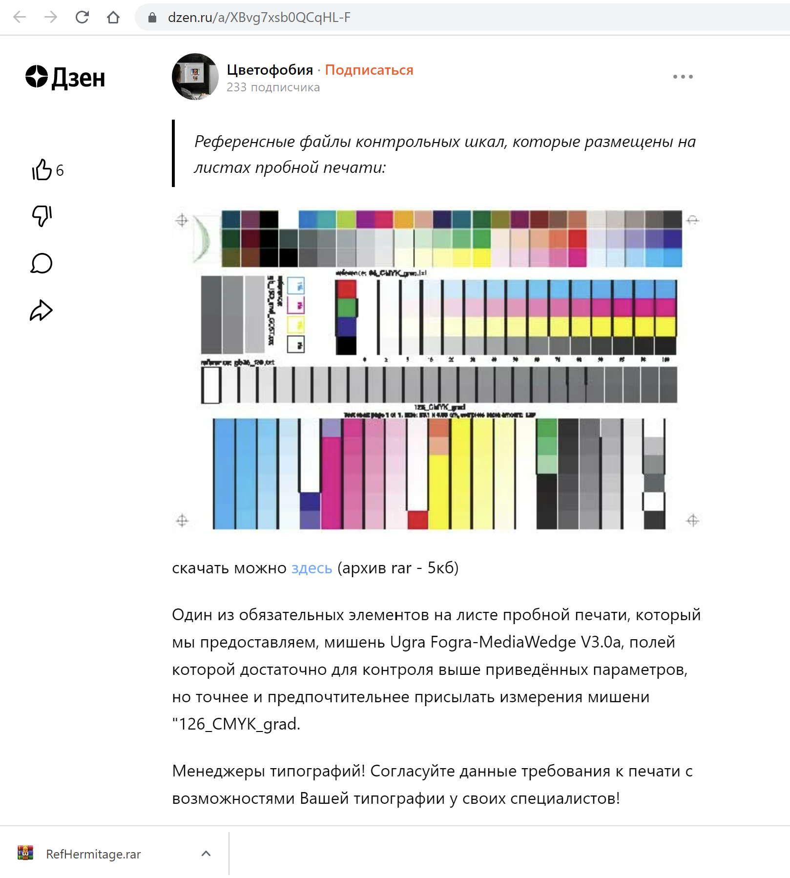 | Стандартизация офсетного процесса по ISO или ГОСТ • 5852 downloads Набор шкал для линеаризации CTP и калибровки офсетного процесса (компенсации растискивания на пластинах). Pdf-файл для печати и референсы для измерений + двухрядная модификация 64-польной шкалы под i1 и i1iO для печати на полях коммерческих тиражей Комментарий от cielab.xyz: набор шкал для линеаризации CTP и калибровки офсетного процесса (компенсации TVI на пластинах) разработан cielab.xyz специально для решения задачи стандартизации офсетного процесса по ISO 12647-2:2013 или ГОСТ Р 54766-2011 в связке со спектральным калькулятором и калькулятором компенсации площади растровой точки. Шкалы размещайте на оттиске именно так как в файле - вертикально! Это важно. Не ленитесь мерить обе градационные шкалы - побольше и поменьше, потом вычисления компенсации усреднить - точнее будет. Проанализировать правильную толщину наката краски можно здесь. Подробную инструкцию по стандартизации с примерами можно прочитать здесь. Обратиться за помощью в стандартизации. Методика cielab.xyz изложена в большой статье в Publish 2015 (№11 и №12): «Стандартизация по ГОСТ Р 54766. Тонкости калибровки офсета». Данные шкалы с 2018 года применяются Государственным Эрмитажем для контроля печати, без указания первоисточника здесь. |